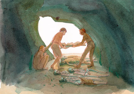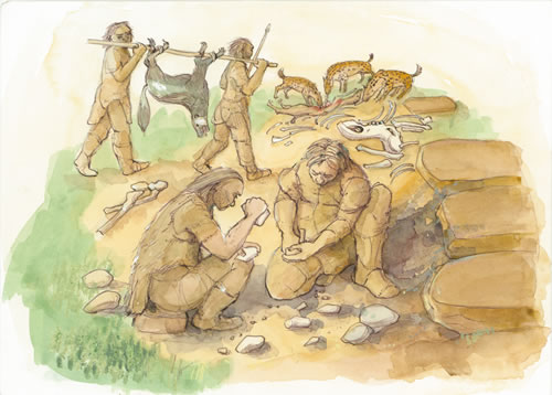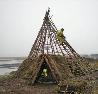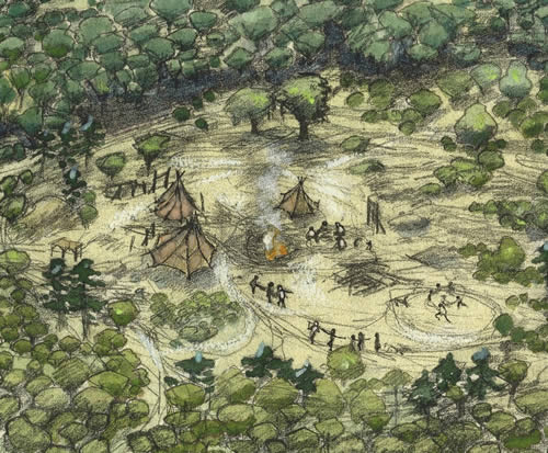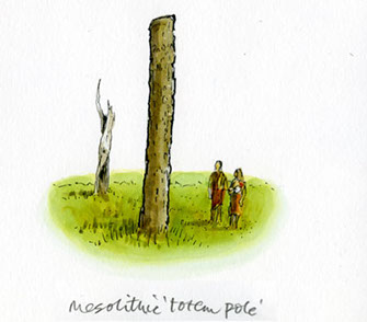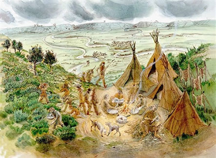 The reconstruction drawing shows what a Mesolithic camp might have looked like.