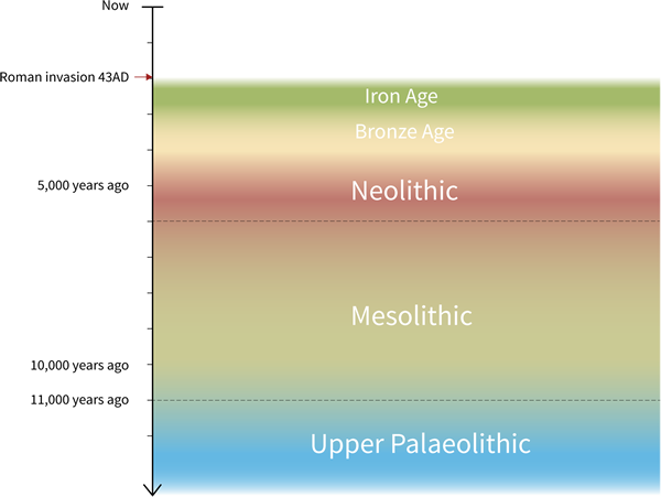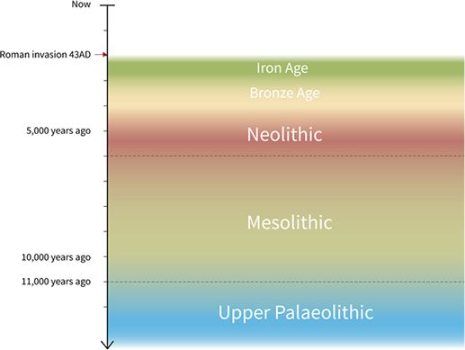 This timeline shows the entirety of British Prehistory, which finishes with the Roman invasion.