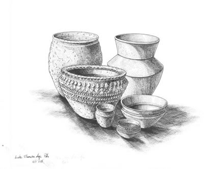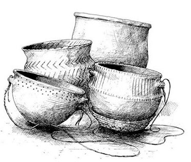 A reconstruction drawing of Neolithic pottery from Windmill Hill. © Historic England.