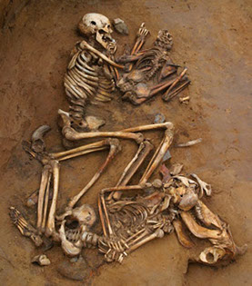 In the early Bronze Age human burials were often covered by large circular mounds of earth or stone, known as round barrows.