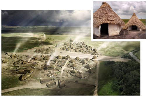 Neolithic settlement at Durrington Walls, Wiltshire, in 2500BC.