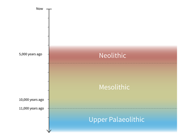 The Palaeolithic or Old Stone Age alone goes back nearly 1 million years. It is also divided into three parts: