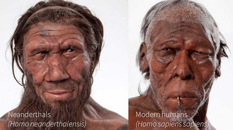 Models of a Neanderthal (left) and an early modern human (right) © Natural History Museum