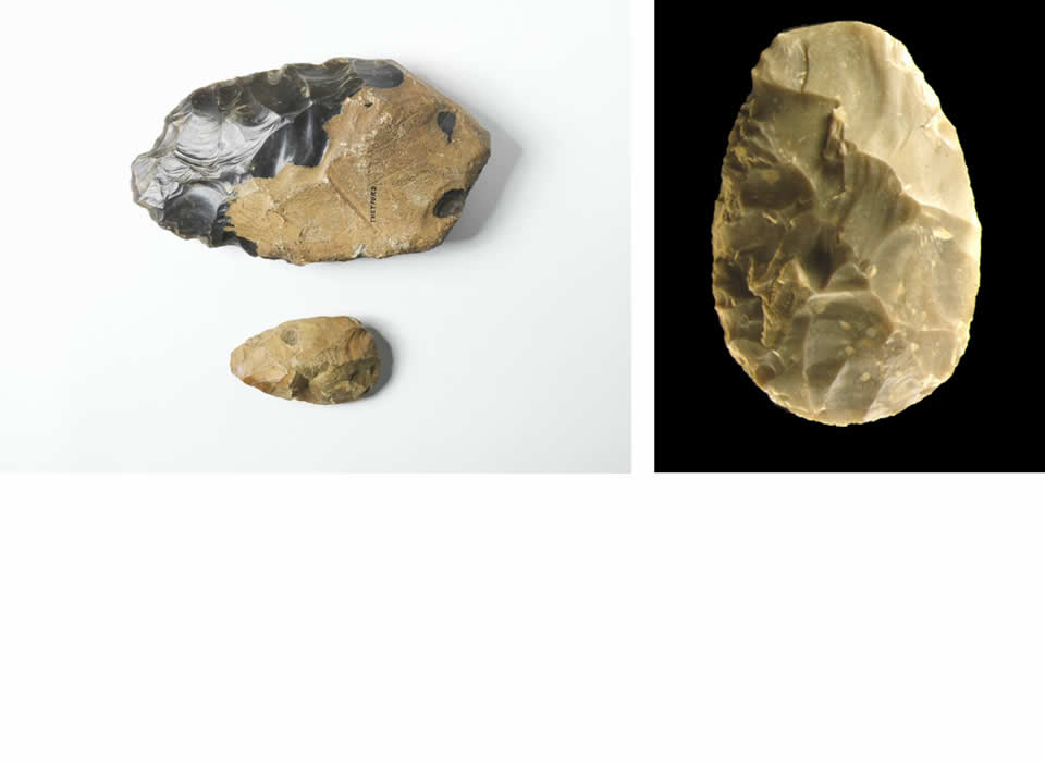 Handaxes were produced by hitting stone nodules with stone, antler or bone hammers.