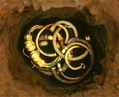 Iron tools and weapons are found for the first time, while gold and other metals continued to be used for jewellery and ornaments.