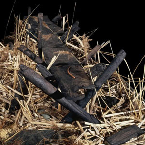 At first most of the people buried under round barrows were buried as whole bodies in a crouched position, sometimes in a coffin. Over time cremation became more common, with the ashes being collected and put in a pottery urn, which was often placed upside down within the barrow.